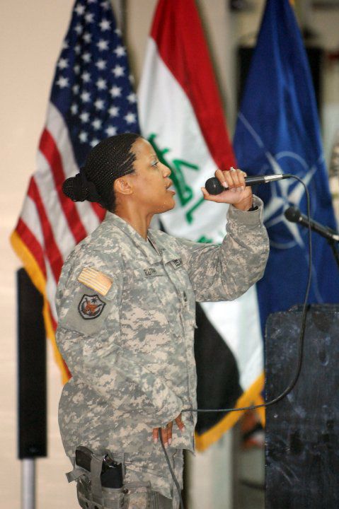 Sang for U.S. troops overseas in Baghdad, Iraq during her 1-year deployment
